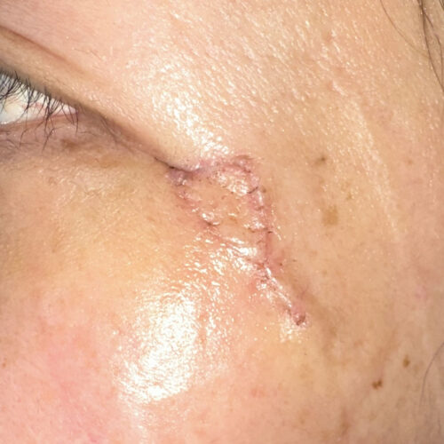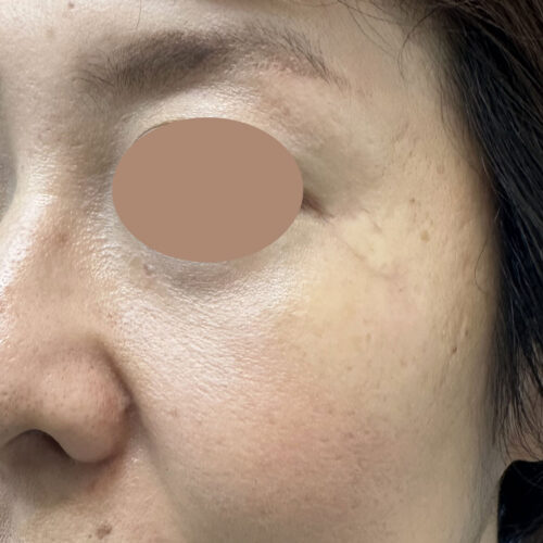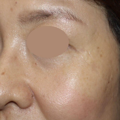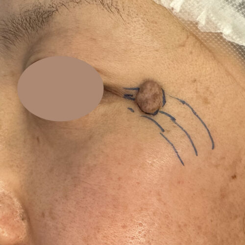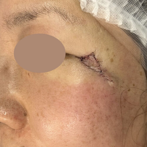 目の際にできた大きなホクロ。今回は皮弁法という形成外科で行われる特殊な技法によってホクロを取った部分の再建手術を行いました。
