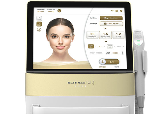 ULTRAcel [zíː]は、超音波を高密度に集束させてターゲットをピンポイント加熱することでコラーゲンや線維芽細胞等を新生・活性化するHIFU(高密度焦点式超音波)テクノロジーを搭載した治療機です。